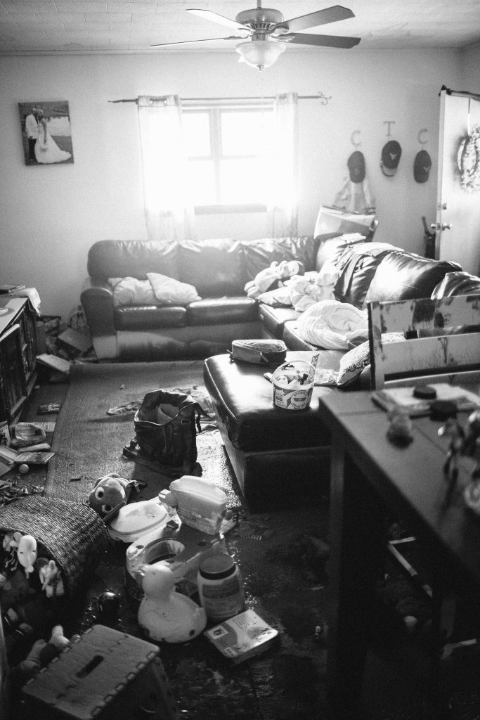 My sister lived next door to us with her husband and two kids. What used to be our relaxing happy places were quickly filling with water. As we stood in our rain boots wondering what on earth do we do, all we could decide on was to try and keep the kids calm and see what happens. Fortunately for her, she had a second level to her home. We did not. So once the river began to breach the bank behind the house, I had no choice but to seek shelter next door at Charlie’s parents’ home. All brick and an upstairs for shelter if needed. I didn’t even have time to grab my cat or diapers. Don’t worry, she floated on the couch all night and lived happily for 4 additional years after that day. That night and the next day we attempted potty training on Callahan which really didn’t work, but hey, we had very few choices. Instead, I wrapped him in his Papaw’s old t-shirts and pinned them like an old cloth diaper. The river rose so quickly, the rescue crew became trapped on the road above the house for the entire night and the following day. We ended up having to move everyone to the upstairs as the river crept into the downstairs after having filled their basement. So me and the boys, along with my in-laws, and Bella their dog, found our shelter in the bedrooms upstairs of their family home.